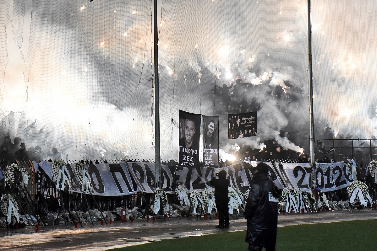 Στην έναρξη του αγώνα όλο το γήπεδο φώναξε “Αδέρφια ζείτε, εσείς μας οδηγείτε” ενώ αντιπροσωπείες των δύο ομάδων αλλά και φιλάθλων κατέθεσαν στεφάνια μπροστά από τη Θύρα 4 για τους επτά φιλάθλους του ΠΑΟΚ που έχασαν τη ζωή τους στη Ρουμανία. Εκεί έχει αναρτηθεί γιγαντοπανό που γράφει “Καλό παράδεισο αδέρφια 27/1/2026” ενώ αρκετοί κρατούν πλακάτ με τις φωτογραφίες των θυμάτων.