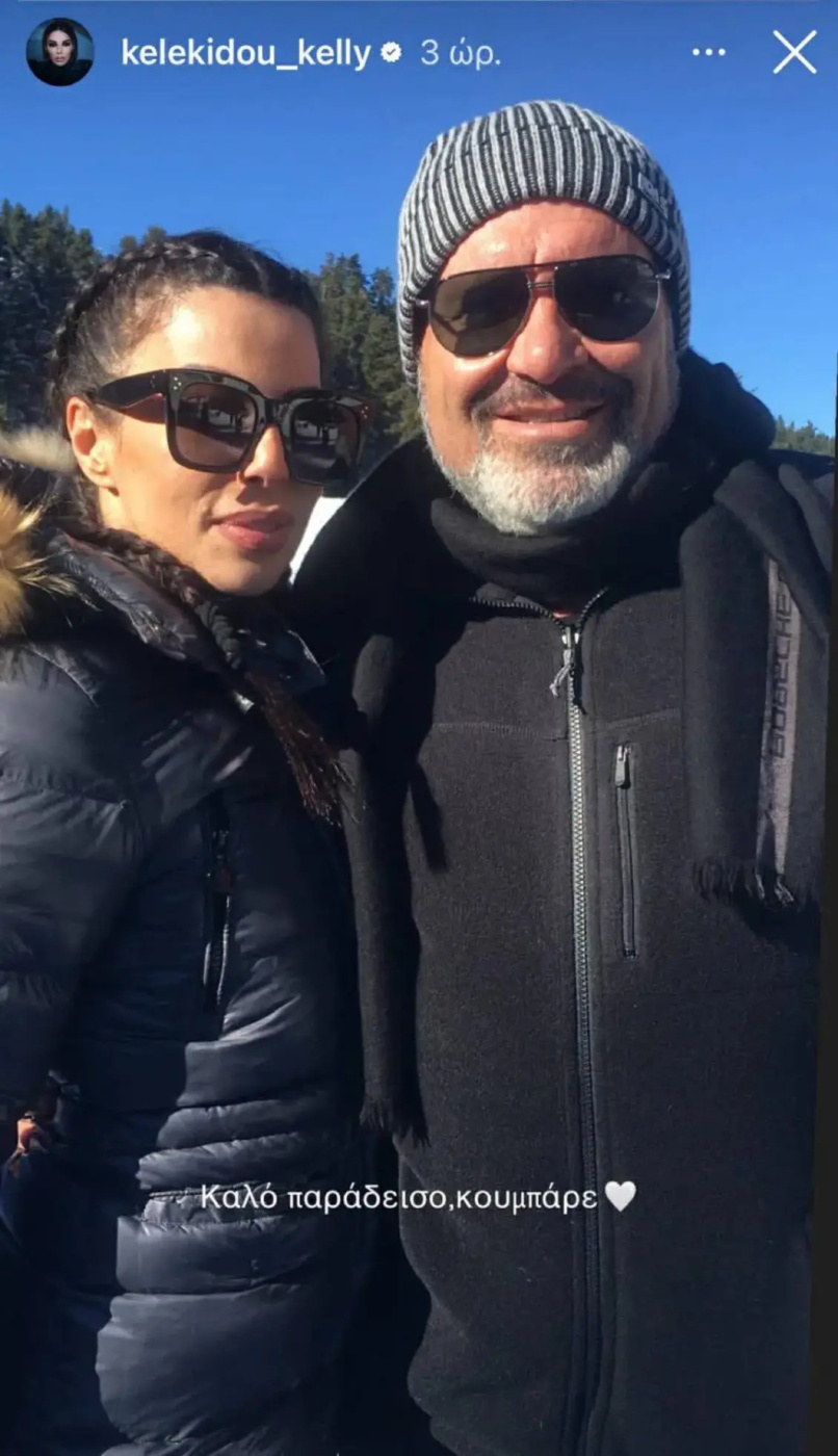 Η τραγουδίστρια επέλεξε να μοιραστεί το πένθος της με τους ακόλουθούς της, δημοσιεύοντας ένα story στον προσωπικό της λογαριασμό στο Instagram. Στην ανάρτηση, η Κέλλυ Κελεκίδου επέλεξε μία κοινή φωτογραφία με τον κουμπάρο της, αποχαιρετώντας τον με λίγα, αλλά γεμάτα συναίσθημα λόγια:«Καλό παράδεισο κουμπάρε».