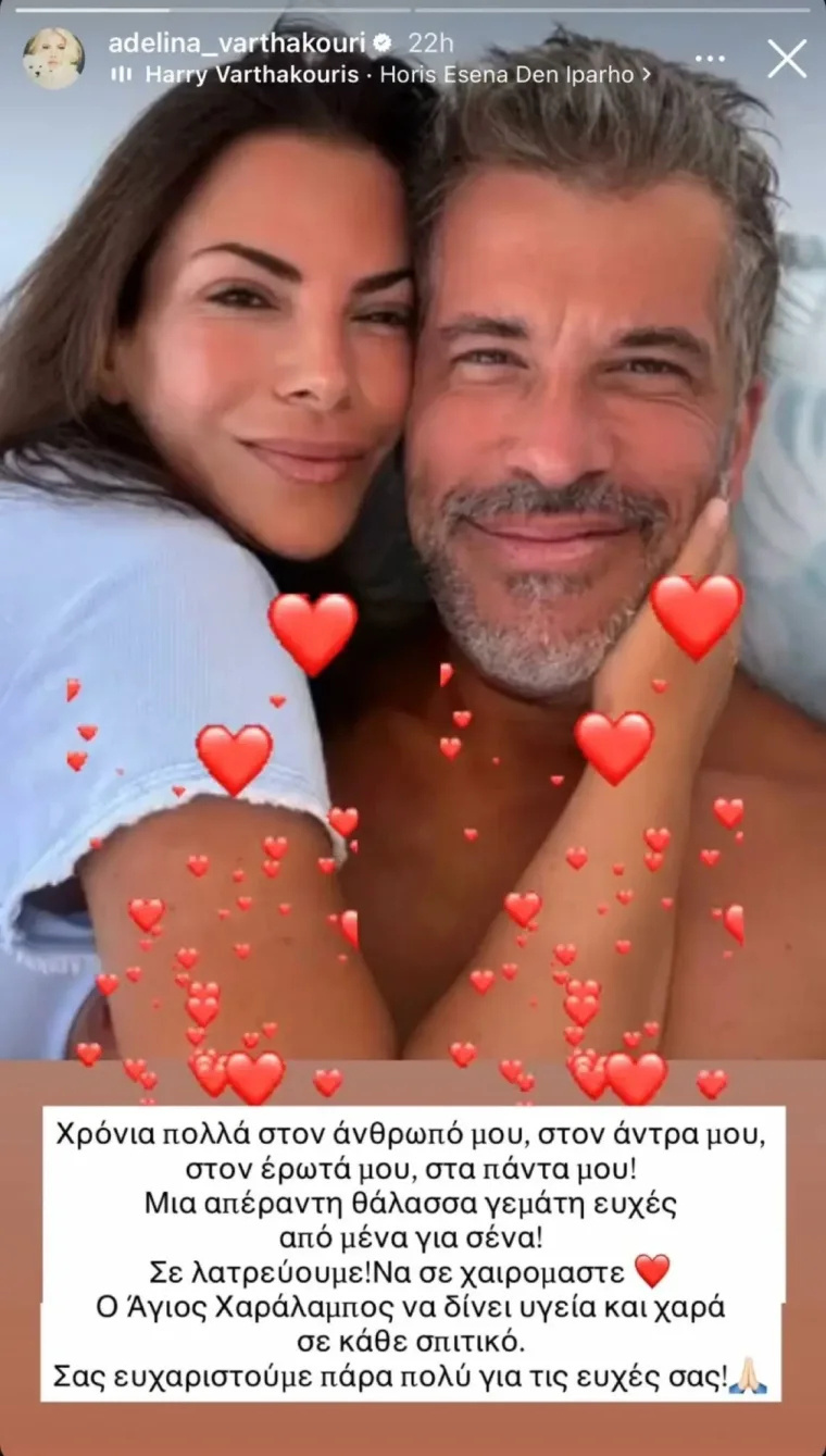 Με αφορμή την ονομαστική του εορτή, ο Χάρης Βαρθακούρης δέχθηκε ένα ιδιαίτερα τρυφερό δημόσιο μήνυμα από τη σύζυγό του, Αντελίνα.