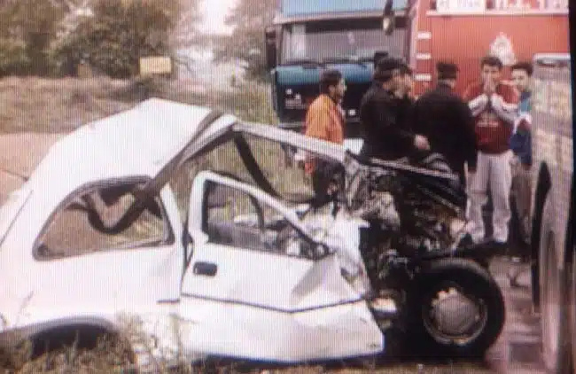 Μην βρίσκοντας ταξί, αποφασίζουν να επιστρέψουν σπίτι με τα πόδια. Είναι 04:00 το πρωί. Ενώ βαδίζουν από τη δεξιά πλευρά, αυτοκίνητο που οδηγεί ο 32χρονος υποσμηναγός Δημήτρης Κουρούπης με κατεύθυνση τη Χαλκίδα και έχοντας δίπλα του, στη θέση του συνοδηγού, τον 26χρονο κουνιάδο του Φώτη Σακελλαράκη, «θερίζει» την παρέα των παιδιών.