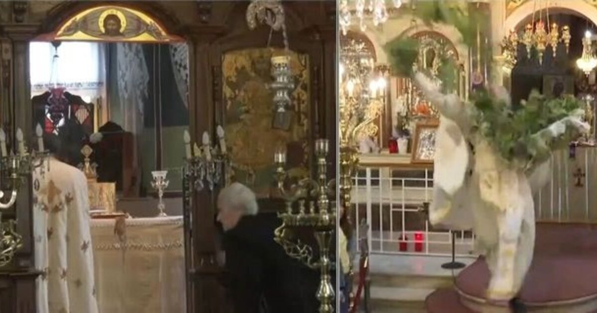 Αμέσως μετά, όπως αποτυπώνεται και σε βίντεο του Πολίτη Χίου, οι πολυέλαιοι άρχισαν να σείονται, ενώ τα Σήμαντρα και τα στασίδια αντήχησαν από τους ρυθμικούς χτύπους των πιστών.