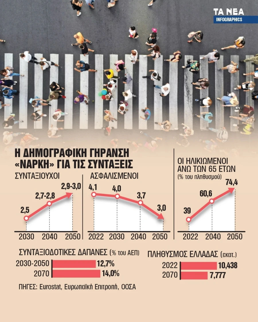 Παράλληλα, ειδικοί στην κοινωνική ασφάλιση επισημαίνουν ότι οι αλλαγές μετά το 2029 θα εξαρτηθούν από τρεις δημογραφικούς δείκτες: