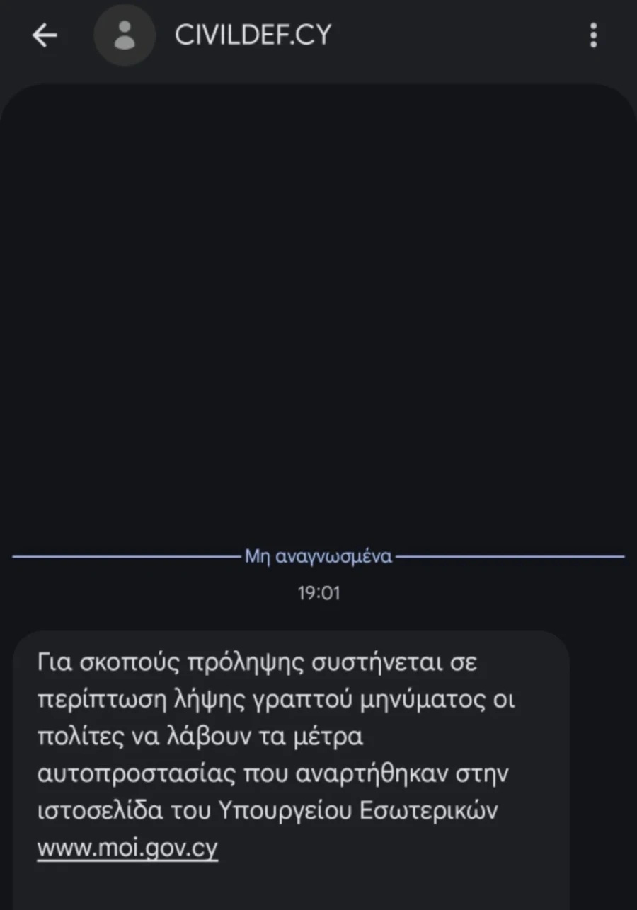 Επιπλέον, ο υπουργός Εσωτερικών είπε ότι «η Κυβέρνηση, σε συνεργασία με όλους τους παρόχους τηλεπικοινωνιών στην Κύπρο, έθεσε από σήμερα σε λειτουργία σύστημα αποστολής μηνυμάτων για έγκυρη και έγκαιρη ενημέρωση των πολιτών, έτσι ώστε, όταν διερευνάται ενδεχόμενο περιστατικό ασφαλείας, να λαμβάνουν τα απαραίτητα μέτρα που υποδεικνύει η Πολιτική Άμυνα σε τέτοιες περιπτώσεις».