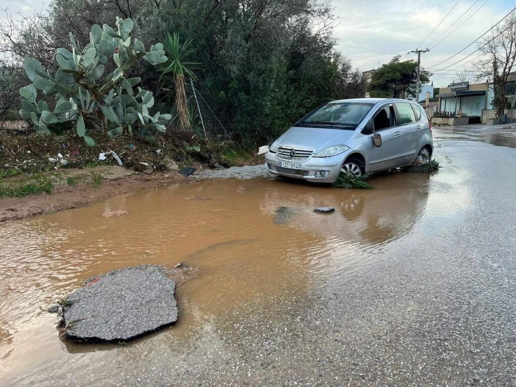 Βάρη: Τεράστιες καταστροφές από την κακοκαιρία – Στη λάσπη σπίτια και αυτοκίνητα, δρόμος «κατάπιε» όχημα της Πολιτικής Προστασίας