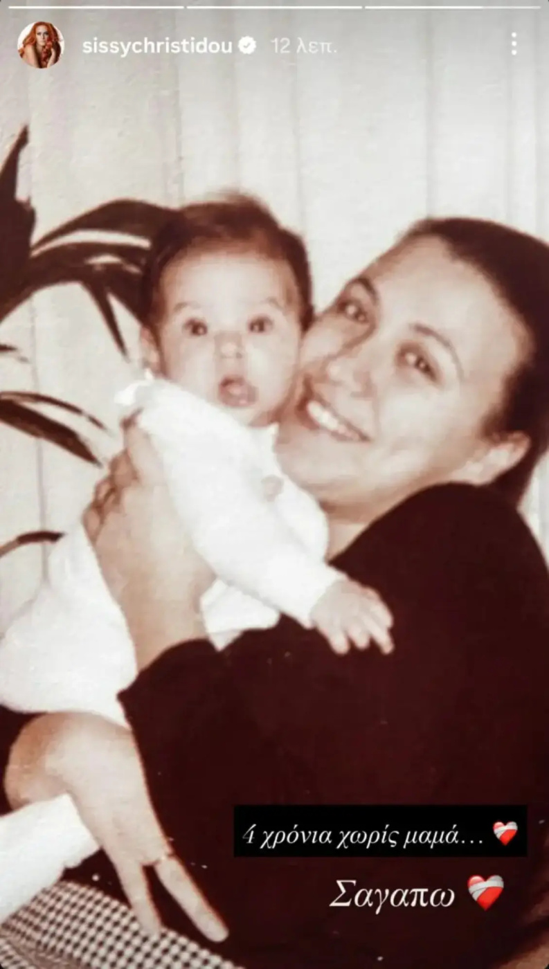 Η ανάρτηση της Σίσσυς Χρηστίδου συνοδεύεται από μια παιδική φωτογραφία που δείχνει τη στενή σχέση και την αγάπη που ένιωθε για τη μητέρα της, με σχόλιο «Τέσσερα χρόνια χωρίς μαμά. Σε αγαπώ», ενώ οι θαυμαστές της έσπευσαν να εκφράσουν τη συμπαράστασή τους και τα τρυφερά τους σχόλια κάτω από τη δημοσίευση.