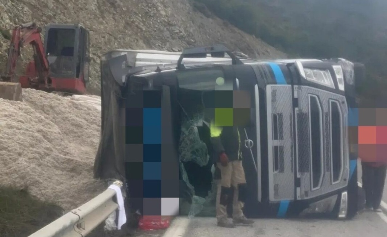 Τρίκαλα: Εκτροπή νταλίκας στην Εθνική Οδό Καλαμπάκας – Παναγίας