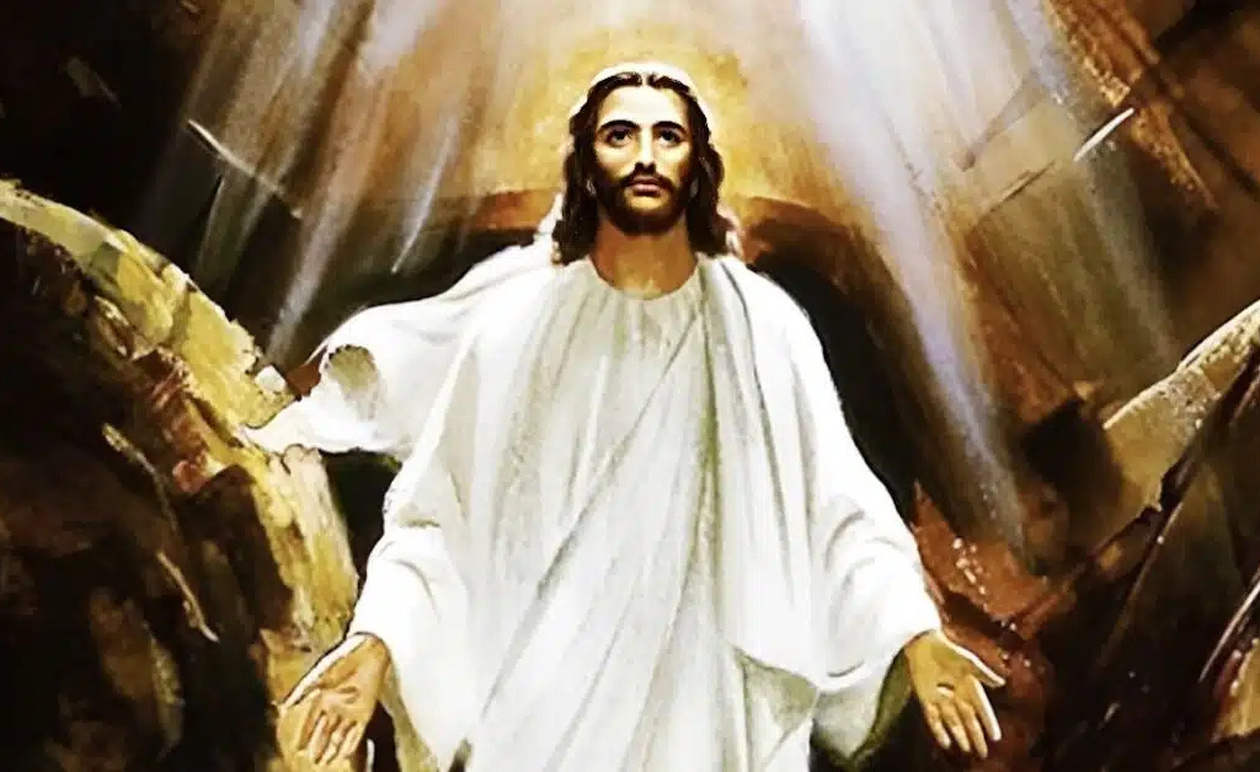 Κατά τις ευαγγελικές περικοπές, οι Μυροφόρες πλησιάζουν τον τάφο του Ιησού. Φτάνοντας στο σημείο, αντί για το άψυχο σώμα, βλέπουν έναν άγγελο ο οποίος τους αναγγέλλει πως «ο Κύριος ανέστη». Οι Μυροφόρες τρέχουν να αναγγείλουν την είδηση στους αποστόλους και ο αναστημένος Ιησούς εμφανίζεται στο δρόμο τους. Κατά τη σύναξη των έντεκα μαθητών εμφανίζεται μπροστά τους ο Ιησούς ο οποίος τους δίνει εντολή «πορευθέντες μαθητεύσαντες πάντα τα έθνη, βαπτίζοντες αυτούς εις το όνομα του Πατρός του Υιού και του Αγίου Πνεύματος».