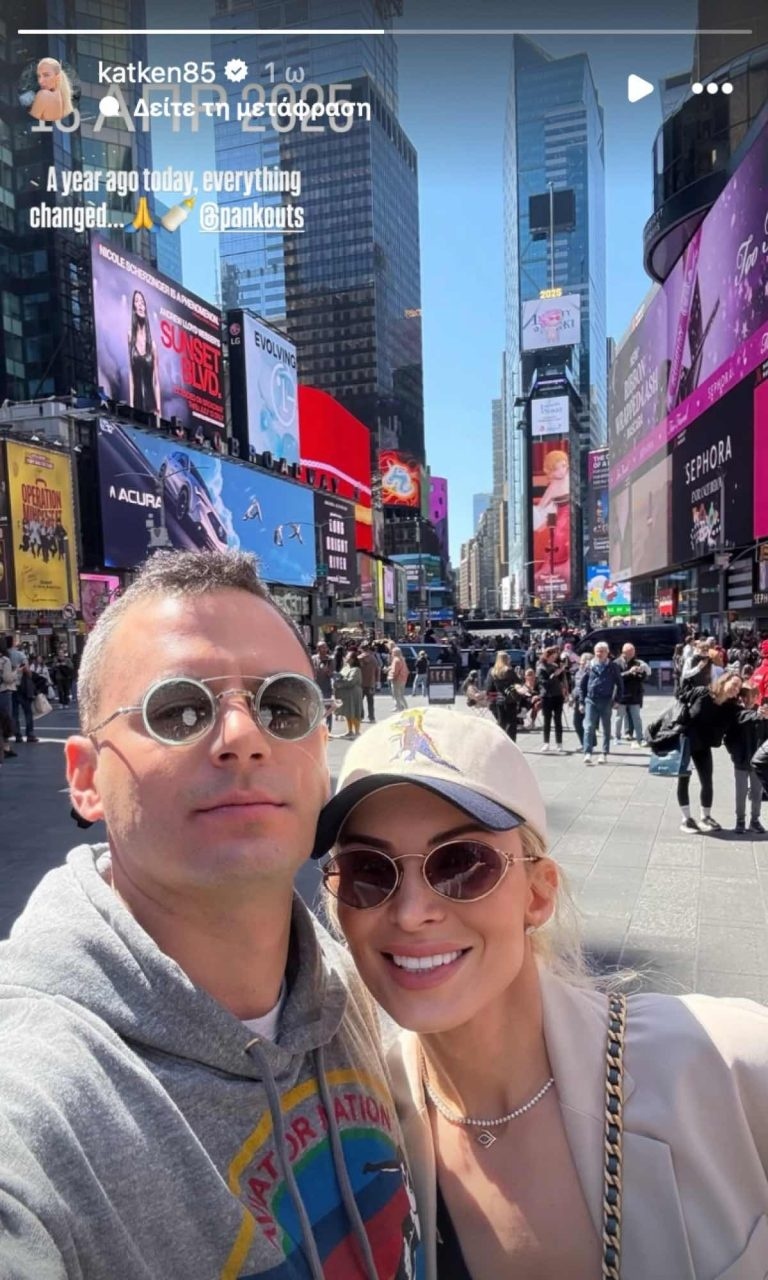 Η παρουσιάστρια ανέβασε μία φωτογραφία στην ιστορία της, στην οποία η ίδια μαζί με τον αγαπημένο της βρίσκονται στην γνωστή πλατεία Times Square της Νέας Υόρκης, την οποία φαίνεται πως είχαν επισκεφθεί μαζί πριν από ένα χρόνο, πολύ πριν γίνουν γονείς. Για να συνοδεύσει την φωτογραφία, έγραψε χαρακτηριστικά: «ένα χρόνο πριν, όλα έχουν αλλάξει», αναφερόμενη φυσικά στην θετική τροπή που έχει πάρει η ζωή τους, τόσο ζευγάρι όσο και ως μεμονωμένες προσωπικότητες, διότι πλέον έχουν φέρει στη ζωή το πρώτο τους παιδί, για το οποίο φαίνονται να πετάνε από την χαρά τους.