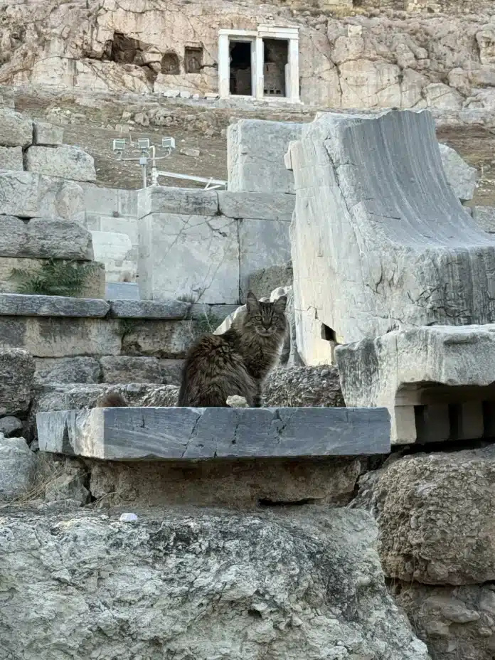 ΓΙΑ 17 ΧΡΟΝΙΑ, στο θέατρο του Διονύσου, στον αρχαιολογικό χώρο της Ακρόπολης, ζούσε μια αδέσποτη γατούλα που έγινε μέρος της εμπειρίας του χώρου.