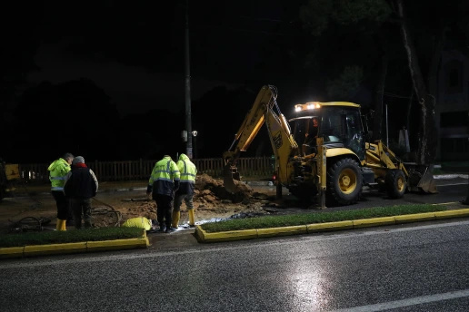 Στο σημείο επιχειρούν ήδη συνεργεία της ΕΥΔΑΠ με τη συνδρομή εκσκαφέα για την αποκατάσταση της ζημιάς, καθώς και προσωπικό του Δήμου που ρυθμίζει την κυκλοφορία.