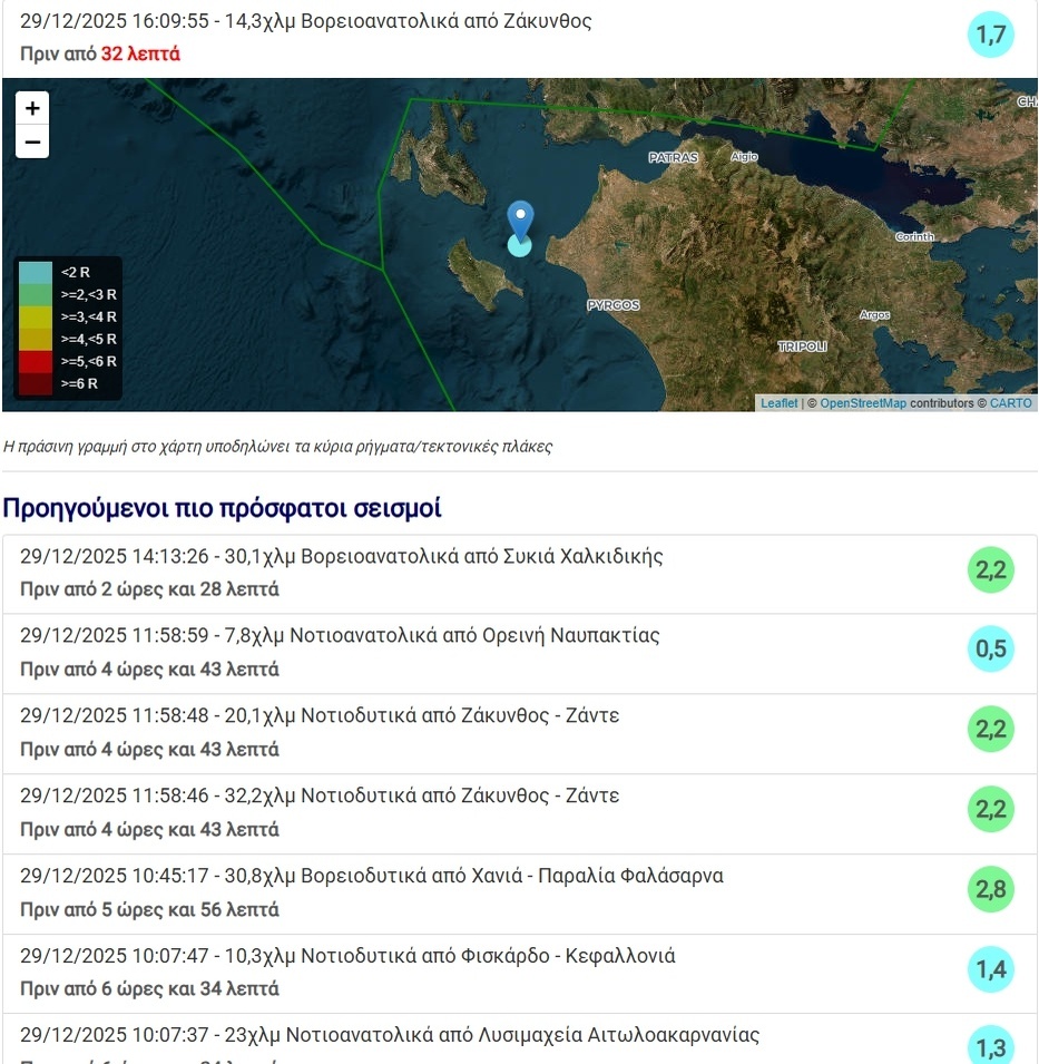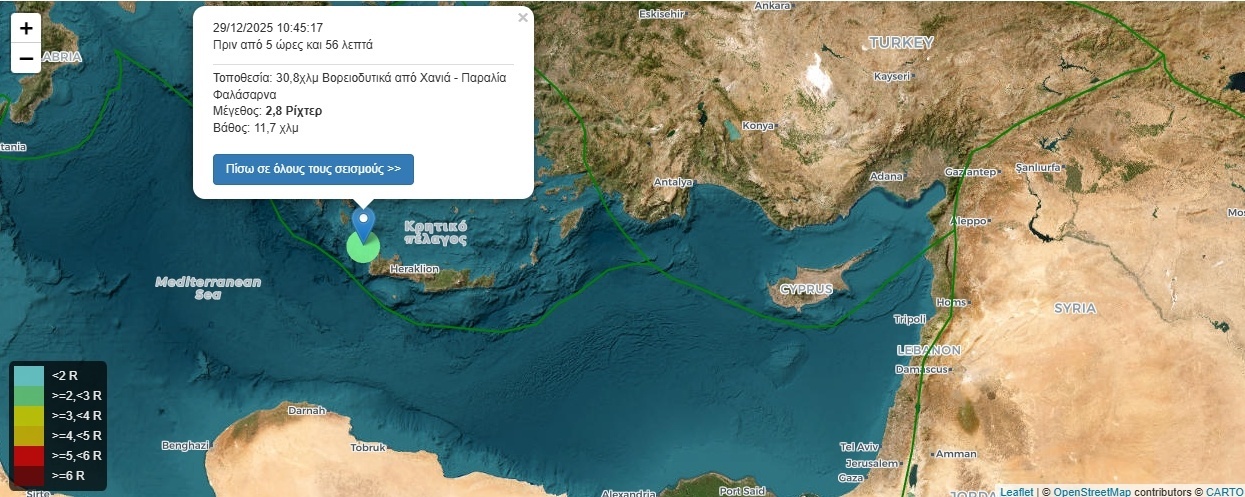 Σεισμός 2,8 Ρίχτερ 30,8χλμ Βορειοδυτικά από Χανιά – Παραλία Φαλάσαρνα στις 29/12/2025