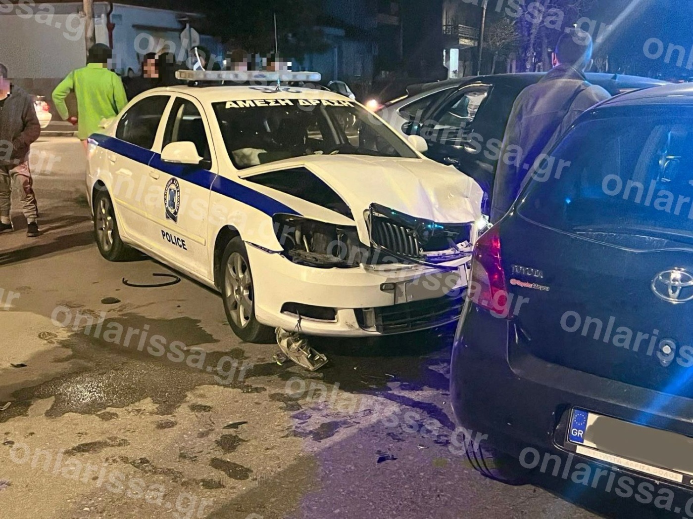 Αποτέλεσμα ήταν ο τραυματισμός ενός αστυνομικού, αλλά και ενός ακόμη άντρα που βρίσκονταν εντός του περιπολικού και μεταφέρονταν στην αστυνομική διεύθυνση Λάρισας, καθώς και μίας γυναίκας.