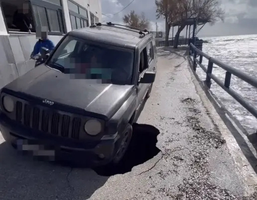 Μάλιστα τη Δευτέρα λίγο έλειψε να προκληθεί και σοβαρό ατύχημα όταν αυτοκίνητο κάτω από αδιευκρίνιστες συνθήκες, έπεσε στη μεγάλη λακούβα.
