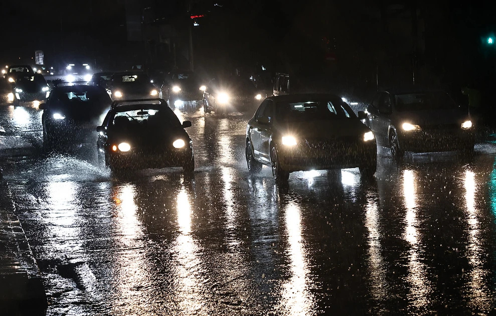 Μείνετε μέσα και ανάψτε τα προειδοποιητικά φώτα στάσης (φώτα έκτακτης ανάγκης) μέχρι να κοπάσει η καταιγίδα.
