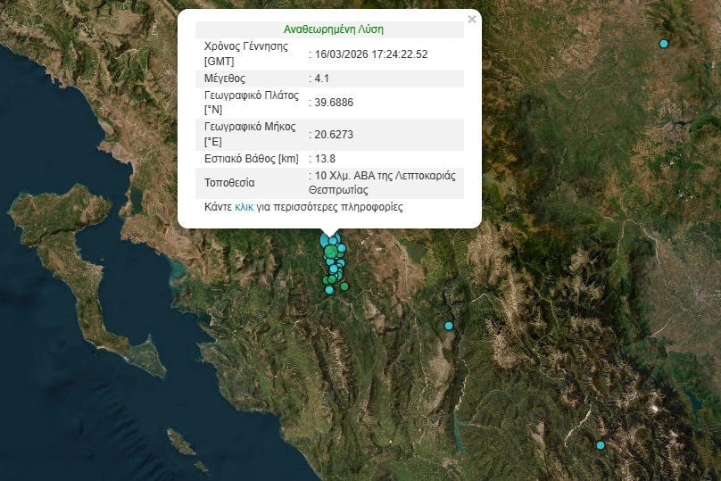 Η συγκεκριμένη ζώνη της Θεσπρωτίας παρουσιάζει αυξημένη σεισμική κινητικότητα τις τελευταίες ημέρες, με διαδοχικές μικρότερες δονήσεις να έχουν καταγραφεί στην ίδια περιοχή.
