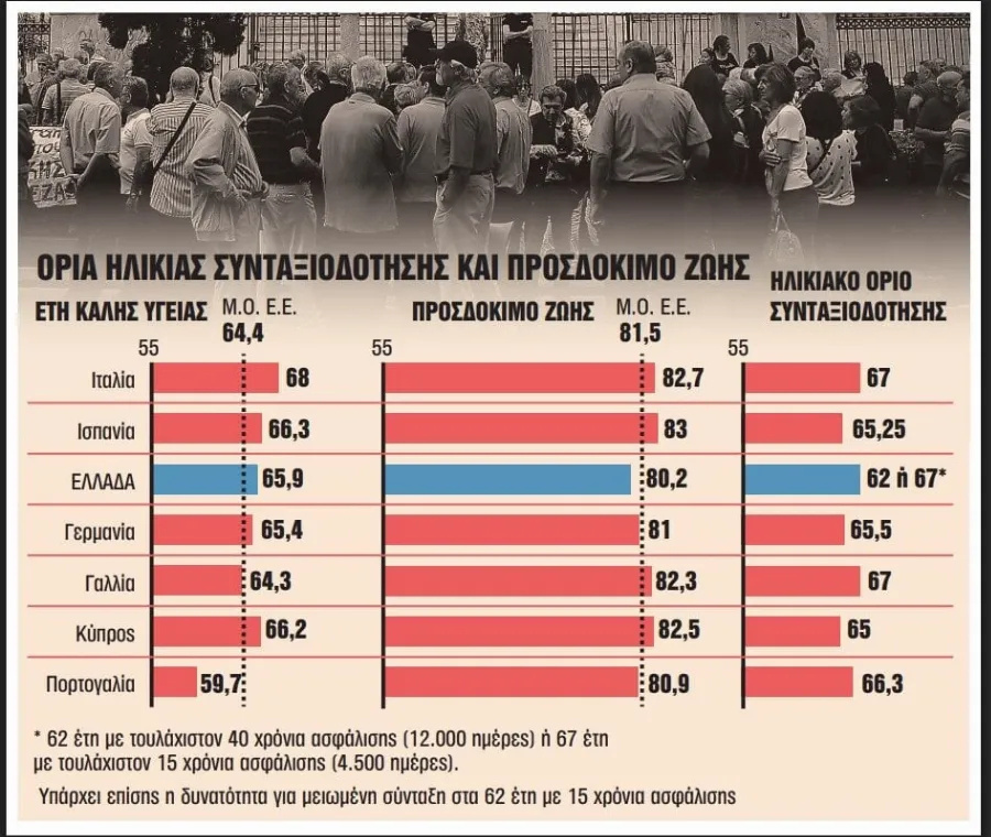 Στο τέλος του 2026 η ελληνική κυβέρνηση θα κληθεί να αποφασίσει αν και πώς θα αυξηθούν τα γενικά όρια ηλικίας συνταξιοδότησης από 1/1/2027, με βάση τις εξελίξεις στο προσδόκιμο ζωής.