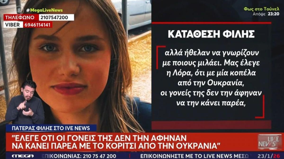 Οι αστυνομικοί προσπαθούν να συνθέσουν το παζλ των επαφών της Λόρας, αναζητώντας στοιχεία που μπορεί να ρίξουν φως στην εξαφάνιση-θρίλερ. Μιλώντας στην εκπομπή «Live News», ο πατέρας μιας συμμαθήτριας μεταφέρει τις μαρτυρίες των κοριτσιών για τη σχέση της ανήλικης με τη συγκεκριμένη φίλη της, αποκαλύπτοντας άγνωστες πτυχές από την καθημερινότητά τους πριν χαθούν τα ίχνη της ανήλικης.