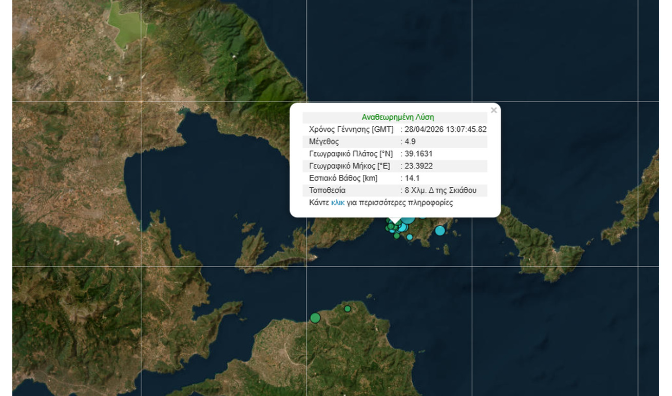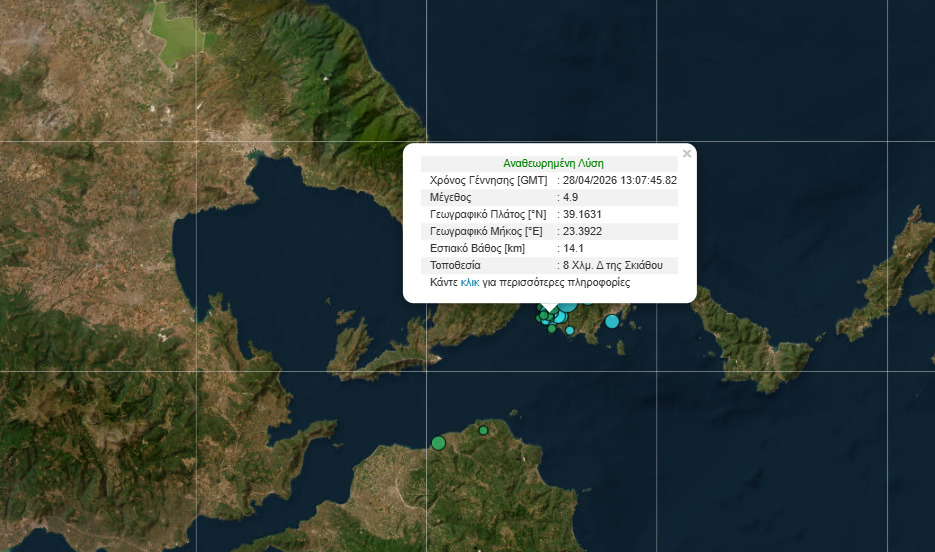 Νέος ισχυρός σεισμός σημειώθηκε στη Σκιάθο, ο μεγαλύτερος που έχει καταγραφεί από το πρωί στο νησί.
