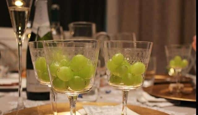 Σύμφωνα με αυτή την παράδοση, πρέπει να φας 12 σταφύλια την ώρα που το ρολόι σημαίνει μεσάνυχτα και έρχεται ο νέος χρόνος. Πολλοί, τη στιγμή που το κάνουν, μπαίνουν κάτω από το τραπέζι.