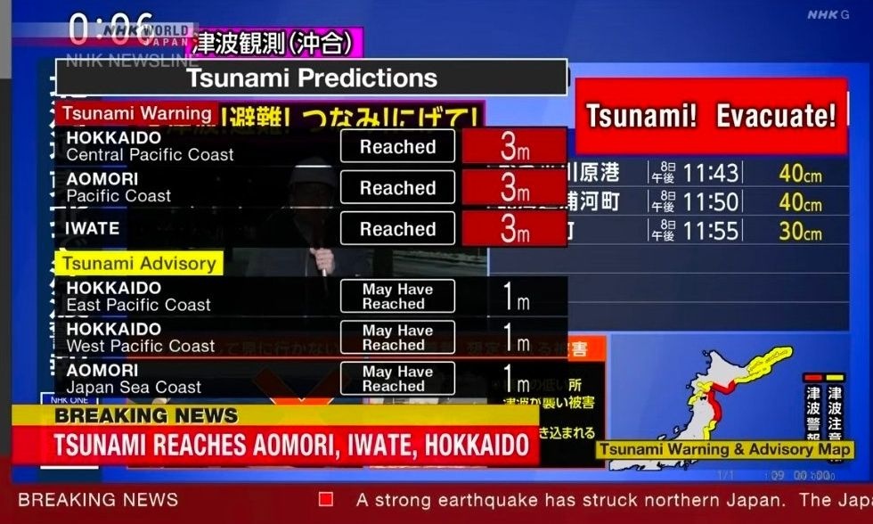 JAPAN 🇯🇵 Tsunami sirens after 7.6 Magnitude earthquake hits.