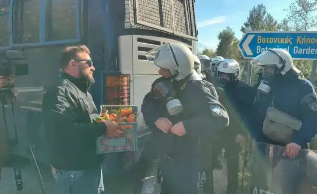Αγρότες στα μπλόκα μοίρασαν πορτοκάλια στους αστυνομικούς