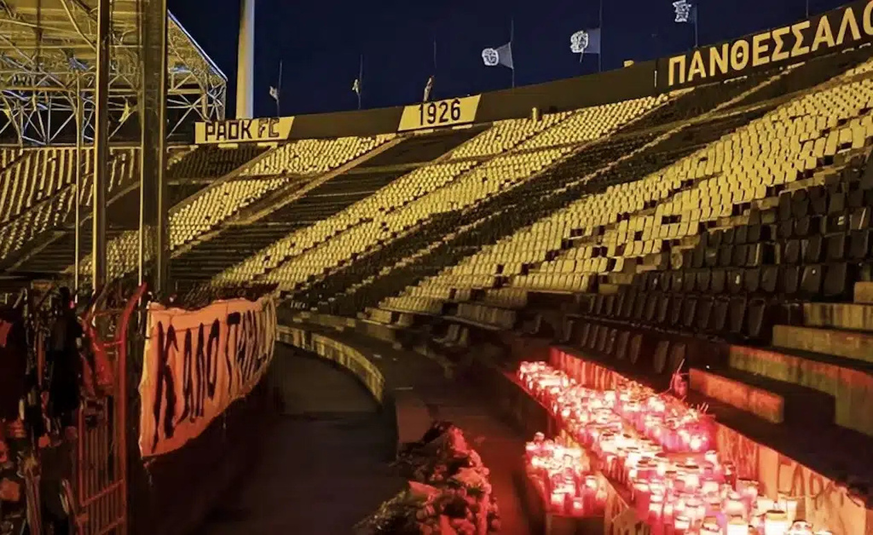Συγκλονιστικές εικόνες στην Τούμπα: Αναμμένα κεριά και πανό για τους αδικοχαμένους φίλους του ΠΑΟΚ