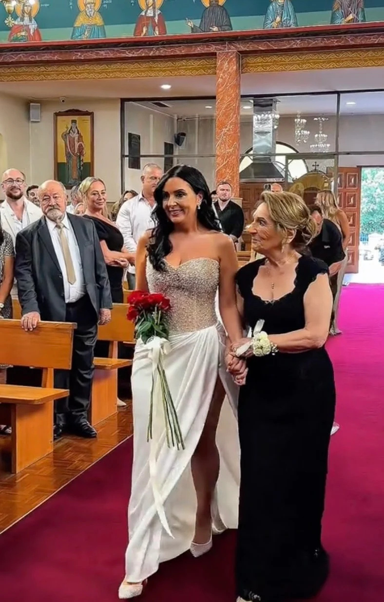 Παρά τις διαδικτυακές αντιπαραθέσεις, η τελετή διατήρησε τον ιερό της χαρακτήρα. Το ζευγάρι έφτασε στην εκκλησία με ένα φωτεινό κίτρινο αυτοκίνητο, προσθέτοντας μια προσωπική και αξιομνημόνευτη νότα στην άφιξή του. Στο εσωτερικό του ναού, που ήταν διακοσμημένος με περίτεχνες θρησκευτικές τοιχογραφίες, η Kerry και ο Costa στάθηκαν ενώπιον του ιερέα, κρατώντας σφιχτά ο ένας το χέρι του άλλου. Η συγκίνηση ήταν έκδηλη όταν η Kerry, κρατώντας μια εντυπωσιακή ανθοδέσμη από κόκκινα τριαντάφυλλα, δέχτηκε ένα τρυφερό φιλί στο χέρι από τον Costa, σε μια κίνηση απόλυτης αφοσίωσης.