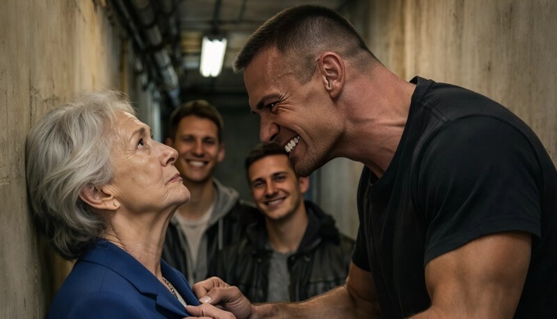 Αυτό ήταν αρκετό. Το πρόσωπο του κακοποιού παραμορφώθηκε από θυμό. Έκανε ένα βήμα μπροστά, την άρπαξε από το γιακά και τη χτύπησε με δύναμη στον τοίχο. Η γυναίκα έκλεισε τα μάτια από τον πόνο, το χτύπημα ήταν δυνατό, αλλά ακόμα κι έτσι δεν φώναξε. Οι άλλοι δύο στέκονταν δίπλα και απλώς χαμογελούσαν.