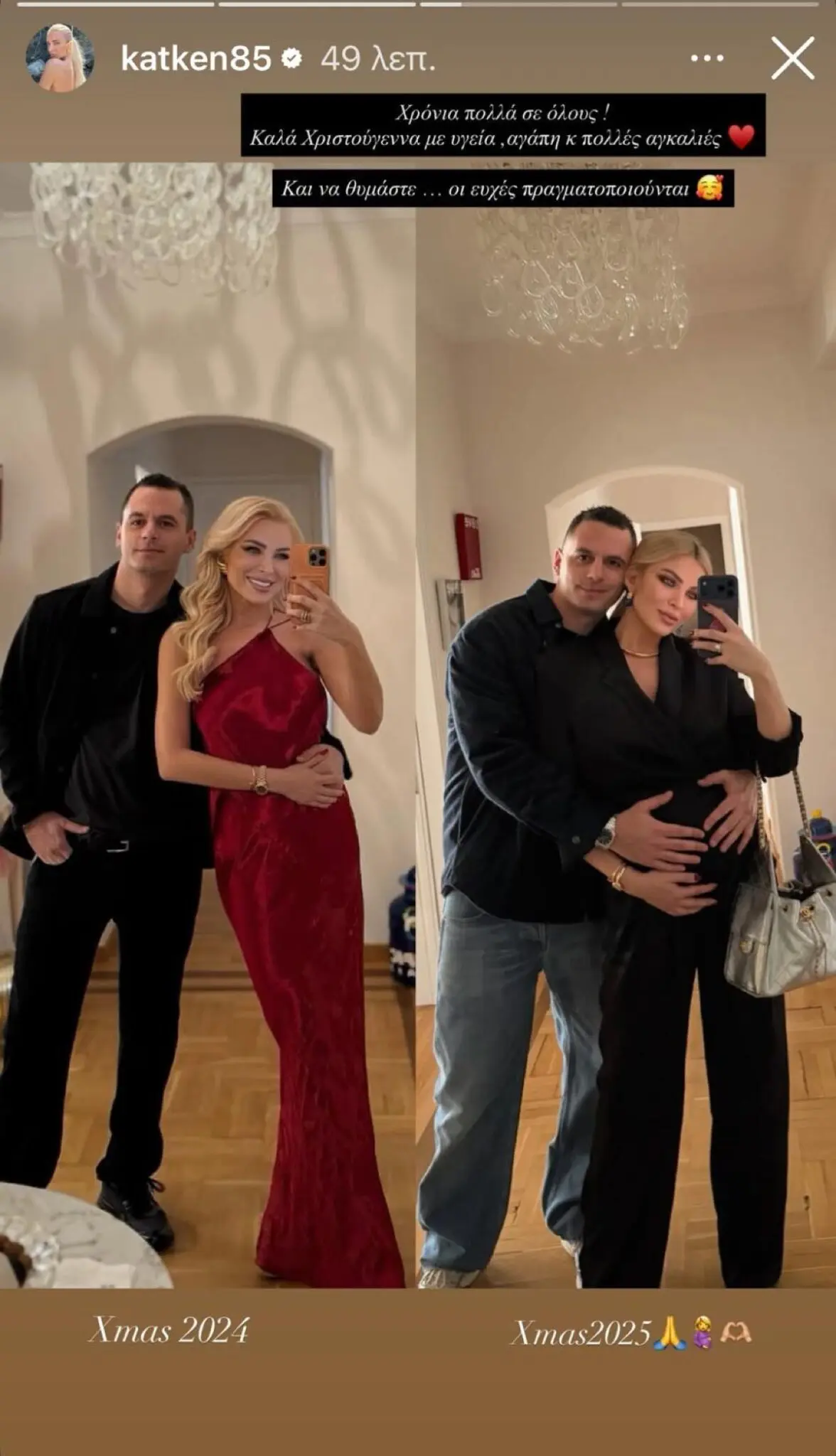 Το πρώτο της παιδί αναμένεται να έρθει στον κόσμο στα τέλη Μαρτίου με αρχές Απριλίου – πασχαλιάτικο δώρο! Για την Κατερίνα, που δεν έχει κρύψει ποτέ την επιθυμία της να γίνει μητέρα, πρόκειται για μια δικαίωση ζωής — ένα όνειρο που άργησε, αλλά τελικά έγινε πραγματικότητα.