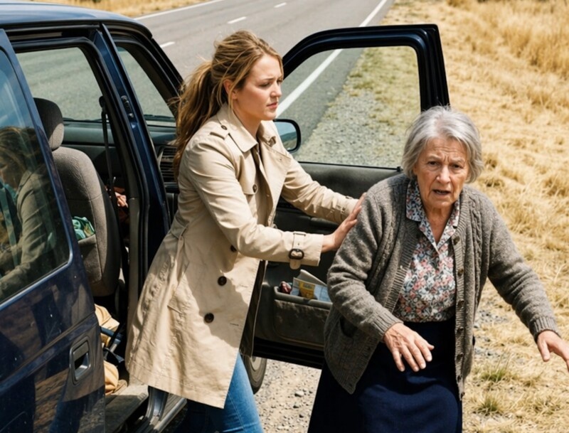 Η πόρτα έκλεισε με θόρυβο. Το αυτοκίνητο έφυγε απότομα. Η ηλικιωμένη έμεινε μόνη στη μέση του άδειου δρόμου.