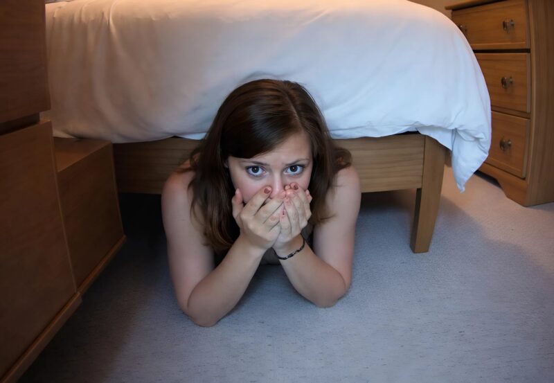 Το πρωί πήρα μια απόφαση. Τηλεφώνησα στη δουλειά και είπα ότι ήμουν άρρωστη. Στις 7:45 βγήκα από το σπίτι έτσι ώστε να με δουν οι γείτονες, έβαλα μπροστά το αυτοκίνητο, οδήγησα λίγα μέτρα, μετά γύρισα πίσω, έσβησα τη μηχανή και μπήκα αθόρυβα από τη πλαϊνή πόρτα. Στο υπνοδωμάτιο χώθηκα γρήγορα κάτω από το κρεβάτι και τράβηξα το κάλυμμα, προσπαθώντας να κρυφτώ εντελώς.