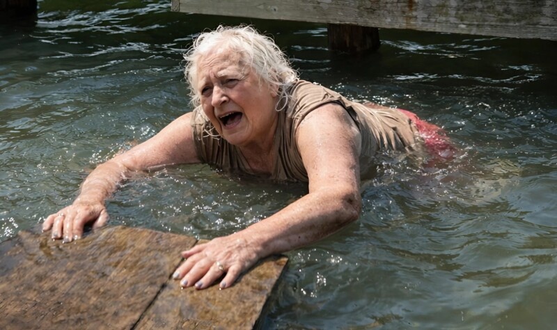 Προσπαθούσε να πιαστεί από τις σανίδες της αποβάθρας, αλλά τα χέρια της γλιστρούσαν στο βρεγμένο ξύλο. Τα ρούχα την τραβούσαν προς τα κάτω, η αναπνοή της κοβόταν. Πάλευε, κατάπινε νερό και ξαναβυθιζόταν.