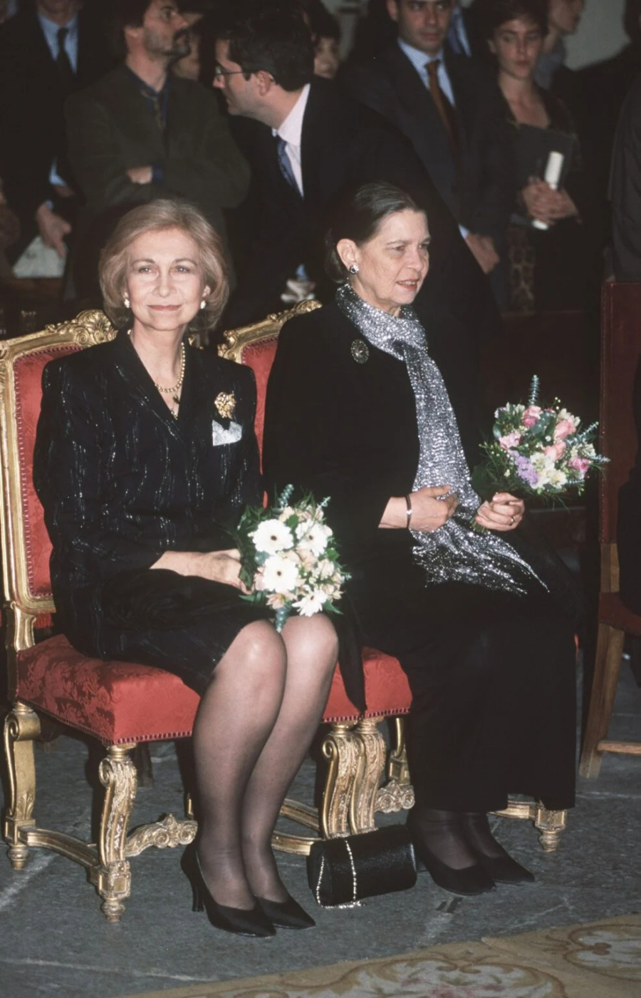 Συνοδεύοντας τον ανιψιό της -τότε- πρίγκιπα Φελίπε της Ισπανίας στο Bridgewater House του Λονδίνου για το wedding reception της μεγαλύτερης κόρης του Κωνσταντίνου, Αλεξίας Γλύξμπουργκ, 1999