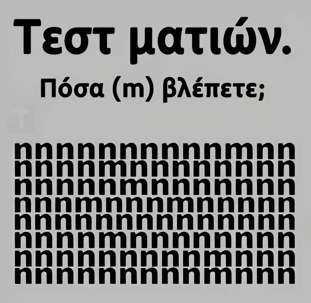 Το τεστ αποτελείται από ένα πλέγμα γεμάτο με το γράμμα “n”, και η πρόκληση είναι να εντοπίσετε πόσα γράμματα “m” υπάρχουν ανάμεσά τους.