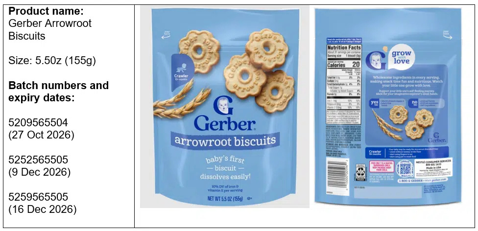 Στον Καναδά, η Υπηρεσία Επιθεώρησης Τροφίμων ανακοίνωσε την απόσυρση των μπισκότων Arrowroot σε συσκευασία 155 γραμμαρίων με κωδικό UPC 0 55000 40314 6 και κωδικούς παρτίδας 5231565504, 5232565504 και 5233565504. Τα προϊόντα αυτά έχουν ημερομηνία λήξης τον Νοέμβριο του 2026. Αντίστοιχα, στη Σιγκαπούρη, ο επίσημος Οργανισμός Τροφίμων έδωσε εντολή στην τοπική Nestle για την άμεση αφαίρεση των προϊόντων από την αγορά, για άλλες όμως παρτίδες, καλύπτοντας τόσο τα φυσικά καταστήματα όσο και τις διαδικτυακές πωλήσεις.